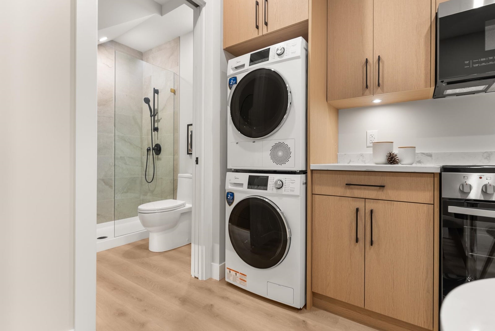 Washer/Dryer, Dishwasher, Refrigerator, Stove, Microwave