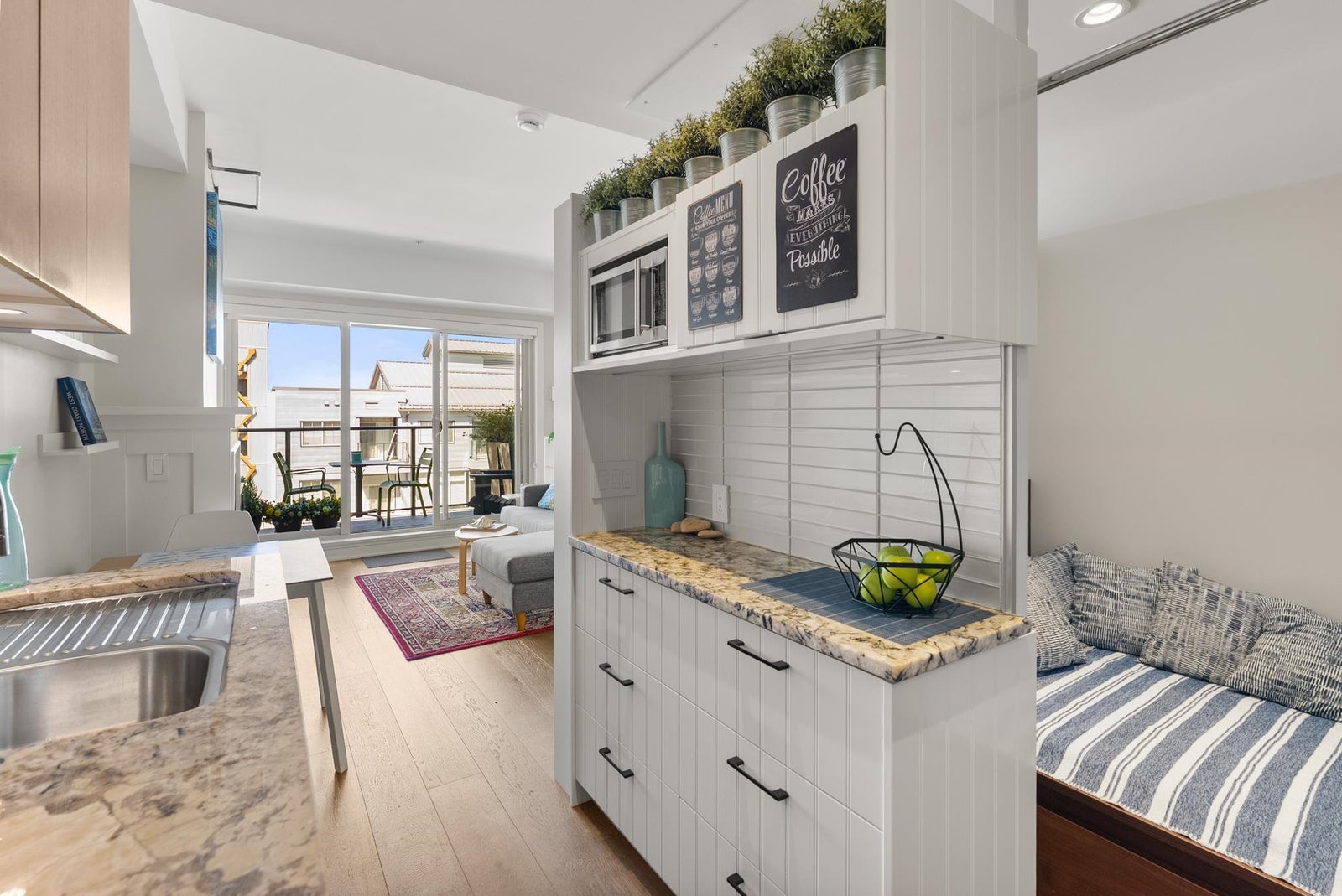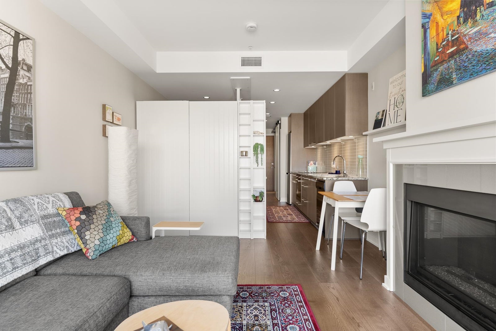 Welcome to The Pier in sought-after London Landing! This rare studio home offers a well-designed layout with a custom sleeping nook for added privacy, a full kitchen, in-suite laundry and closet space, everything one could need! Enjoy stunning west-facing marina & river views from your spacious north-facing balcony—the perfect spot to relax with your morning coffee or enjoy stunning sunsets. The bright living area features large windows that fill the home with natural light, complemented by a cozy gas fireplace for those winter months. Complete with 1 parking stall and a spacious storage locker. Steps to scenic waterfront trails, cafes, and amenities, plus only a short 15-minute waterfront walk to Steveston Village. Don't miss out! Open house Sunday, April 12th 11:30 AM-1:30 PM!